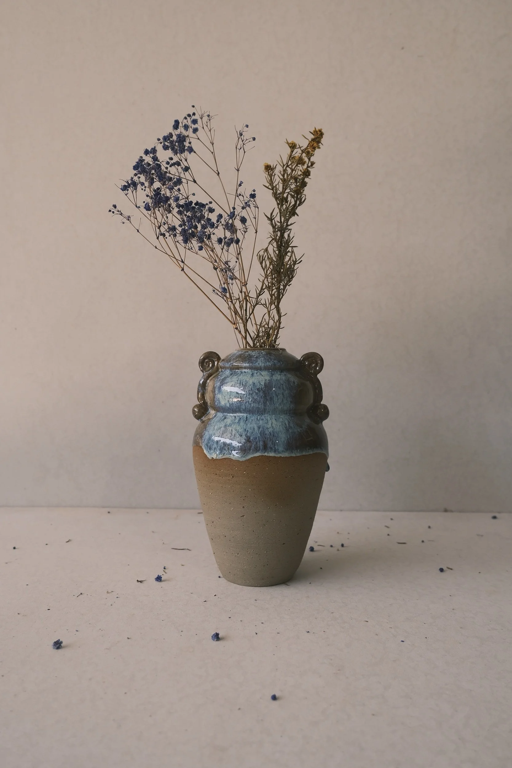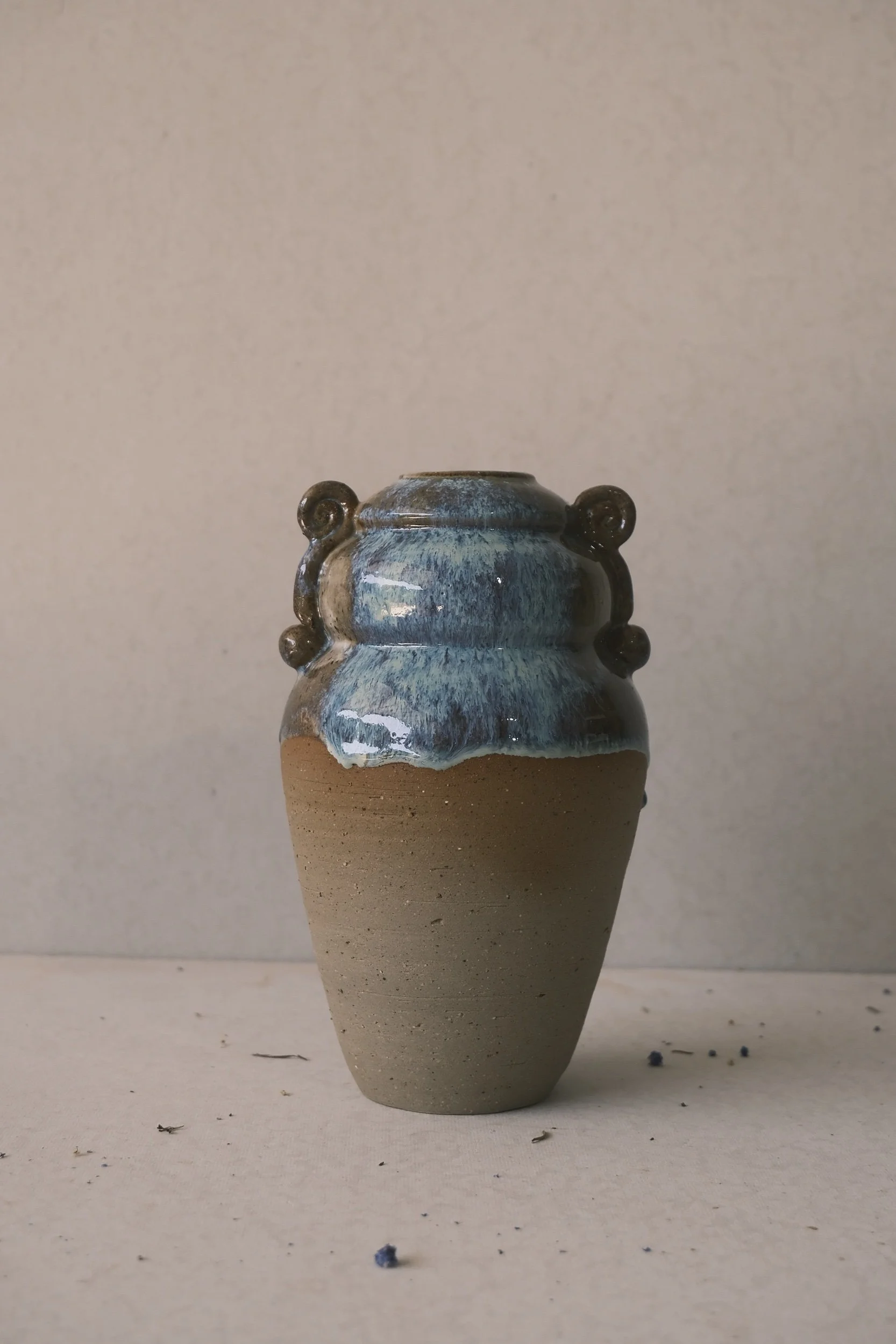 Finished with a combination of my handmade glazes that have been developed to compliment and accentuate the natural iron in the clay.